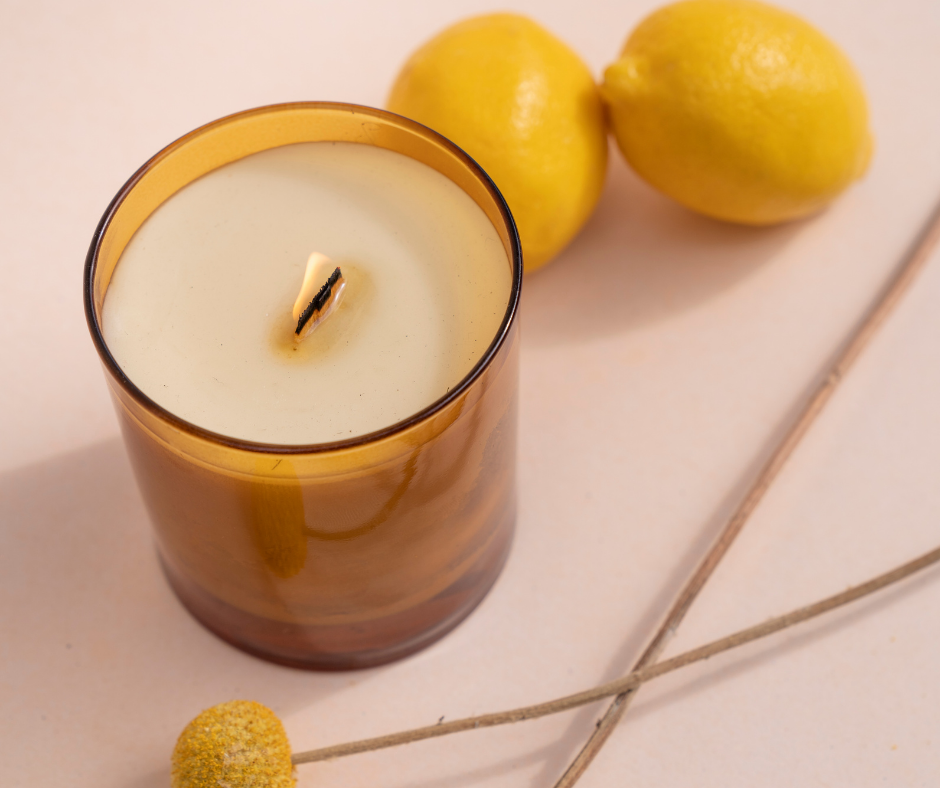 %100 soya wax limon kokulu ahşap fitilli mum
