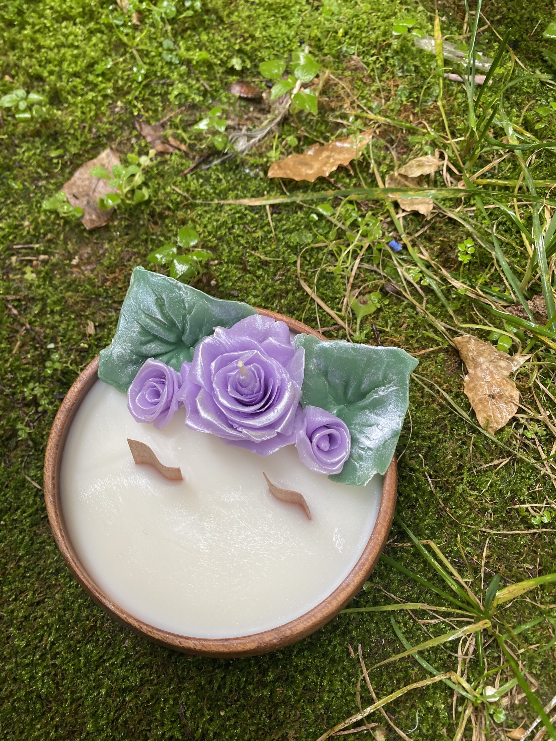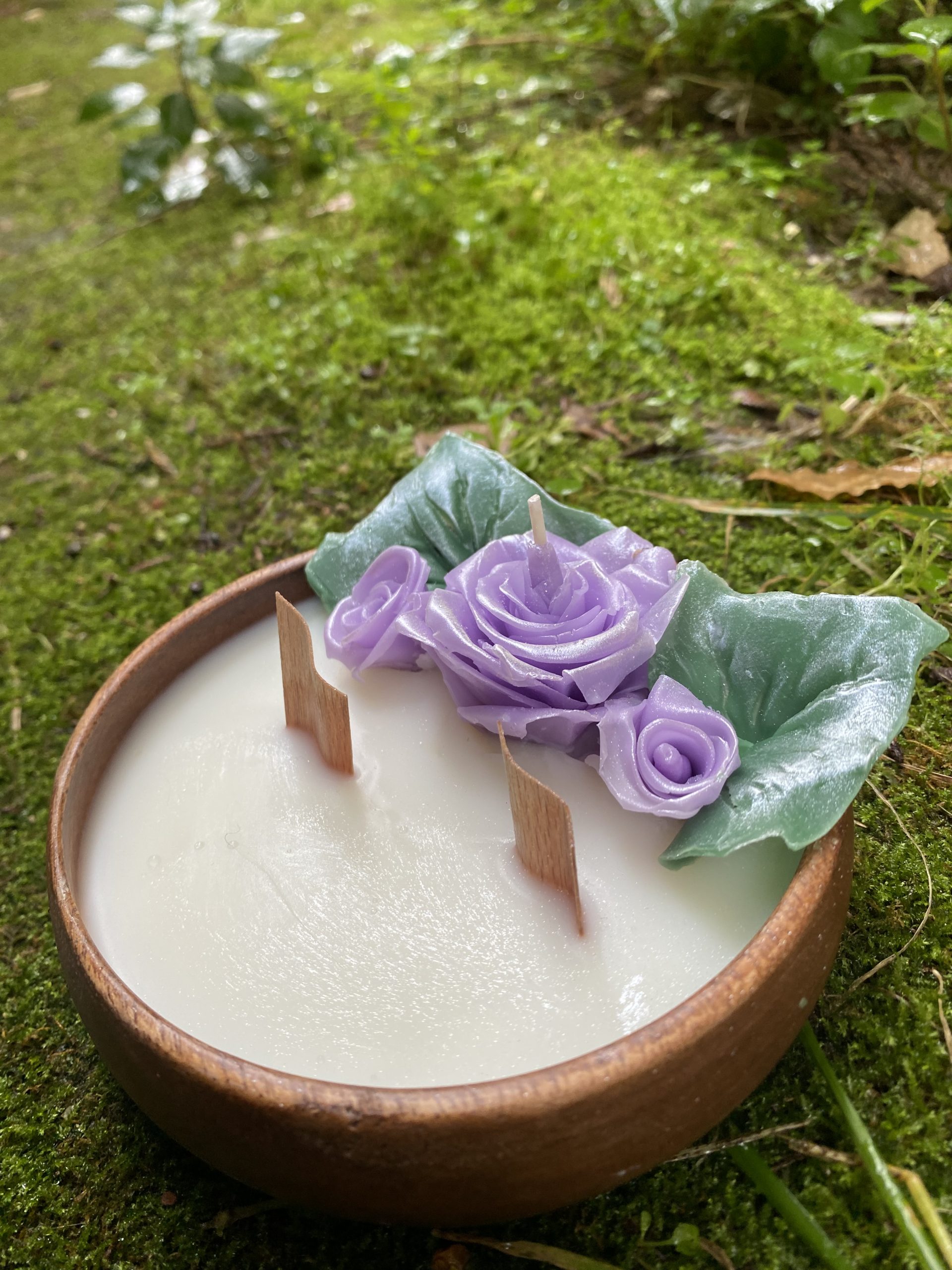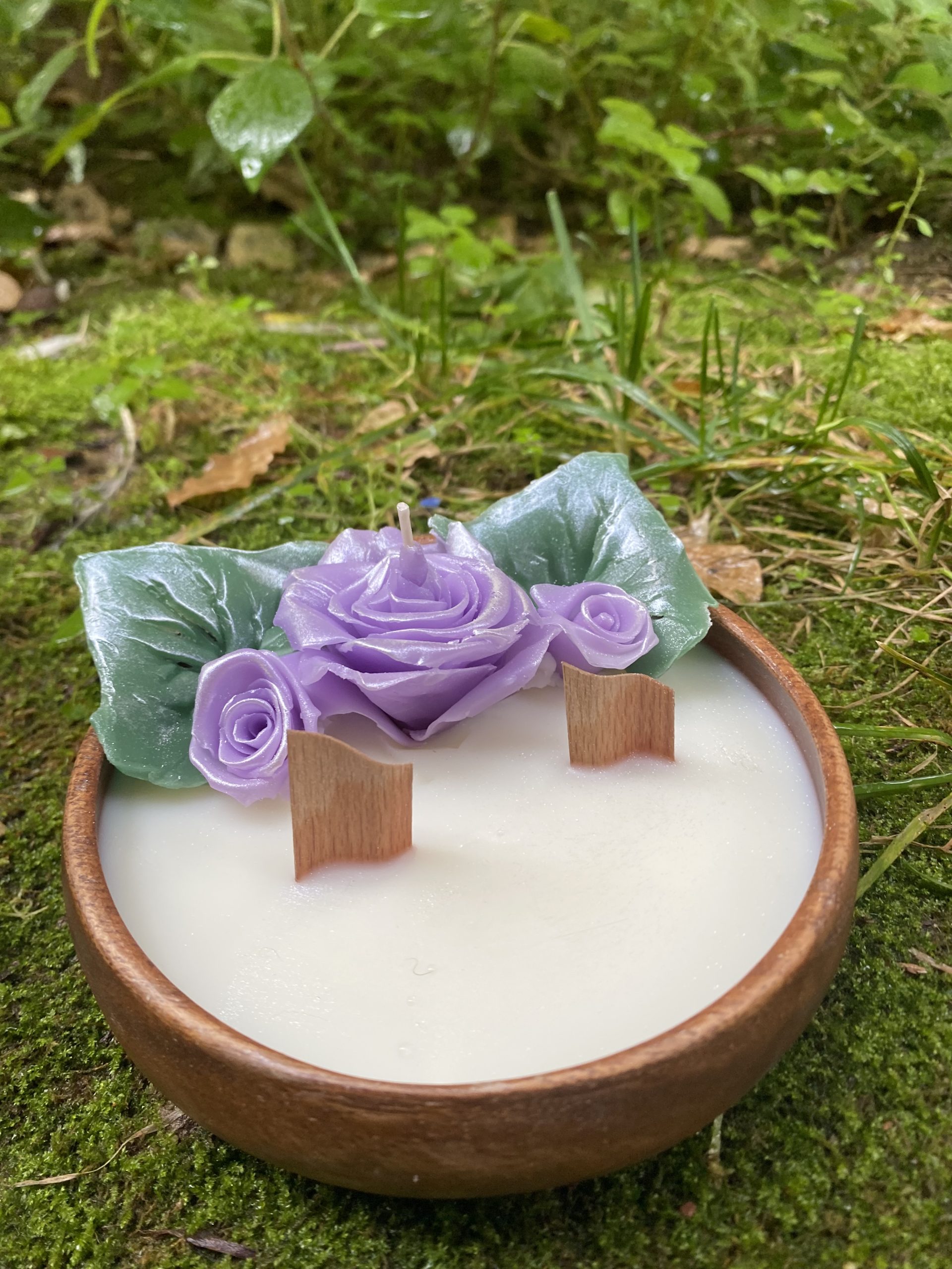 Ahşap fiilli ceviz ağacı saksılı el yapımı soya wax mum tamamen elde şekil vererek yapılmıştır