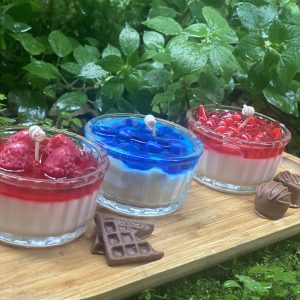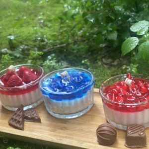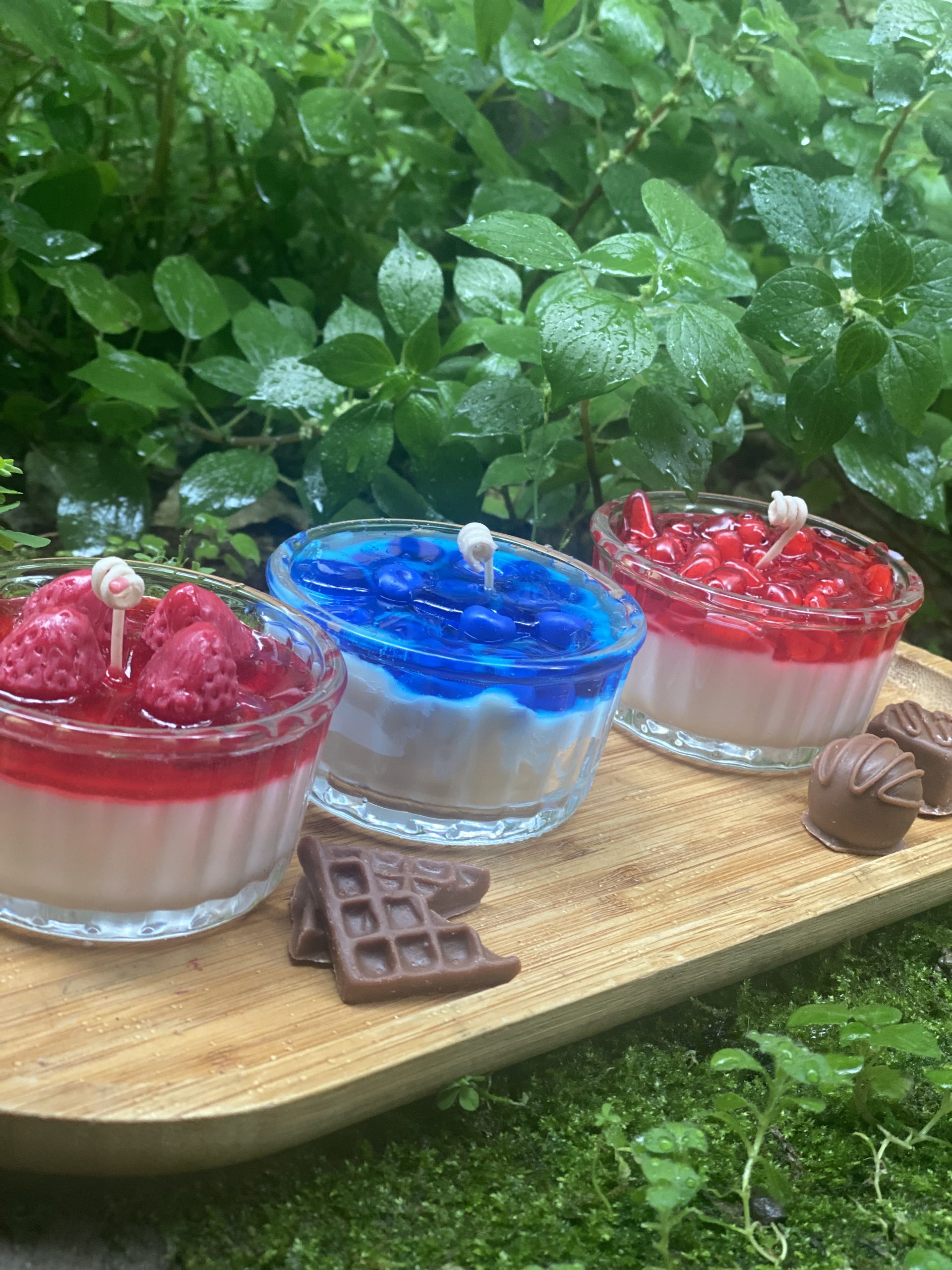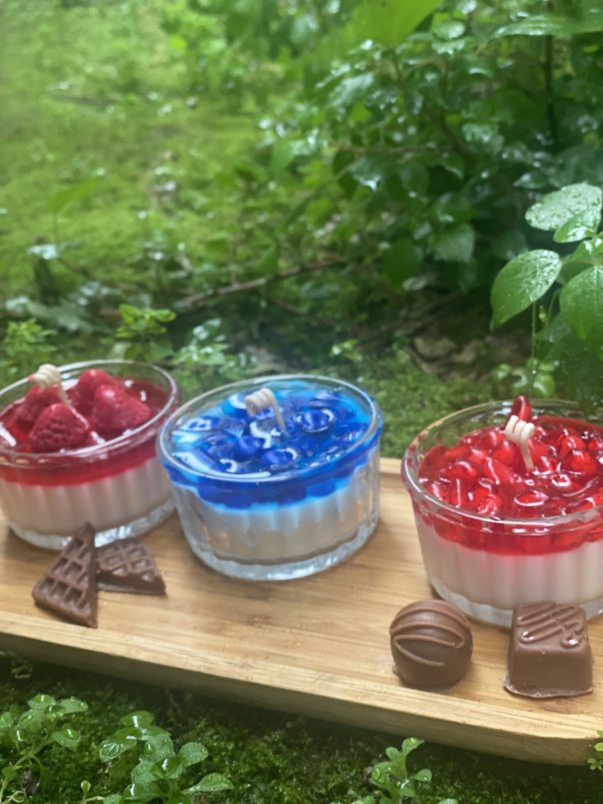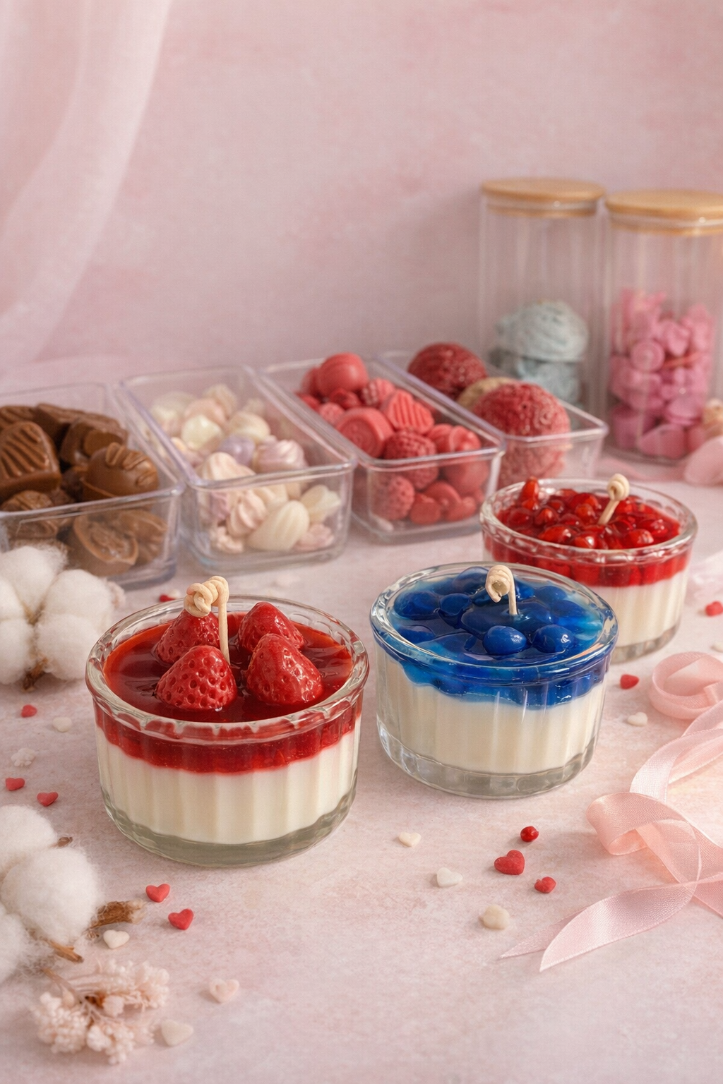 Her biri özenle elde hazırlanan bu mini mumlar; çilek, yaban mersini ve nar temalarıyla hem eğlenceli hem de şık bir atmosfer yaratır. Şeffaf jel dokusu sayesinde üst katmandaki meyve görünümü daha canlı ve gerçekçidir.